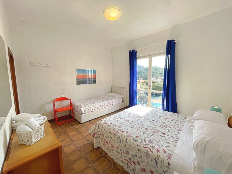 Located on the second and top floor of a residential complex, it consists of a triple bedroom with bathroom, a bedroom with two bunk beds, a second bathroom with shower, a living room with kitchenette, and a terrace. The apartment has a private, small parking space (4.5 x 2 m) and another nearby parking space. Air conditioning in the bedrooms.